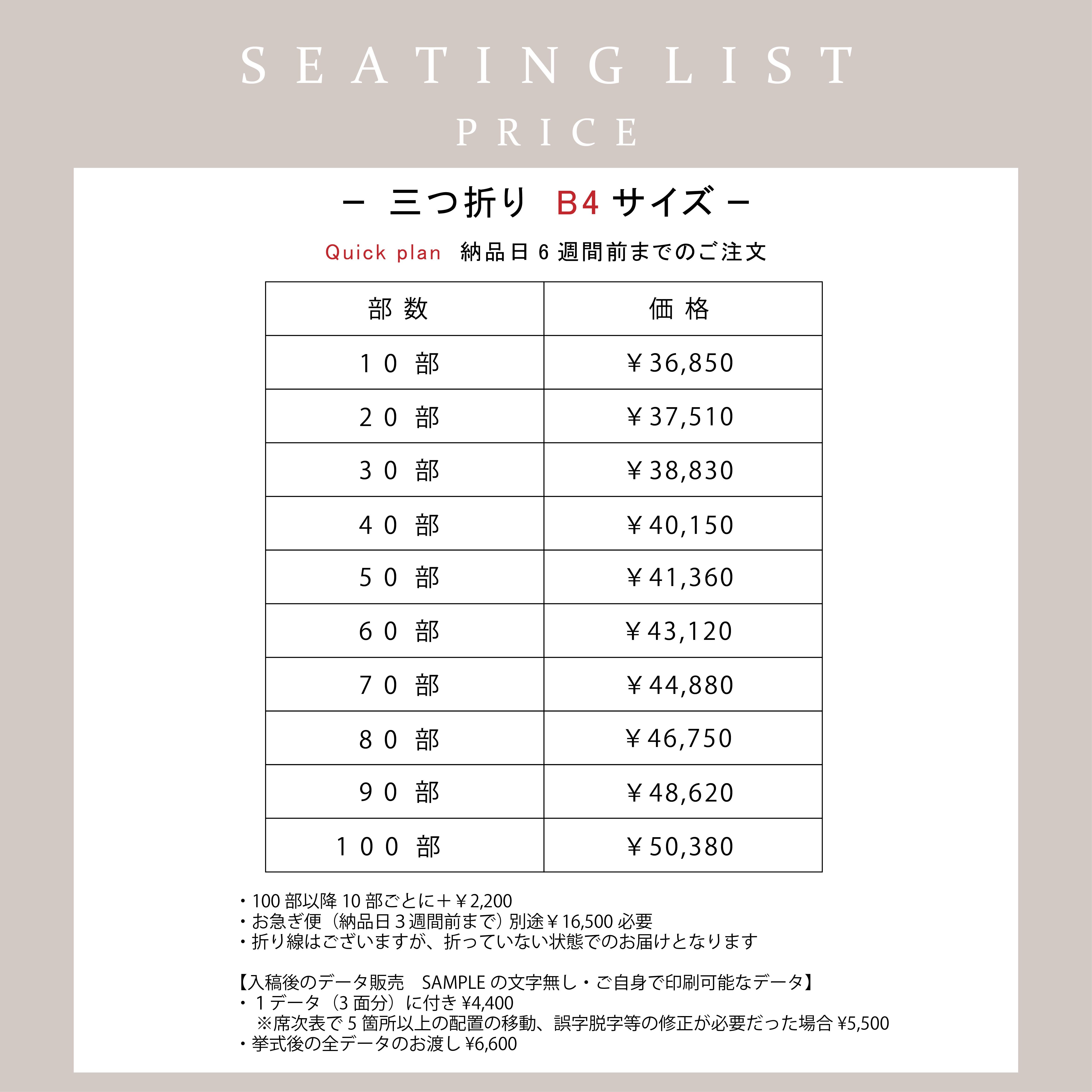 『B4サイズ(シーティングリスト)』