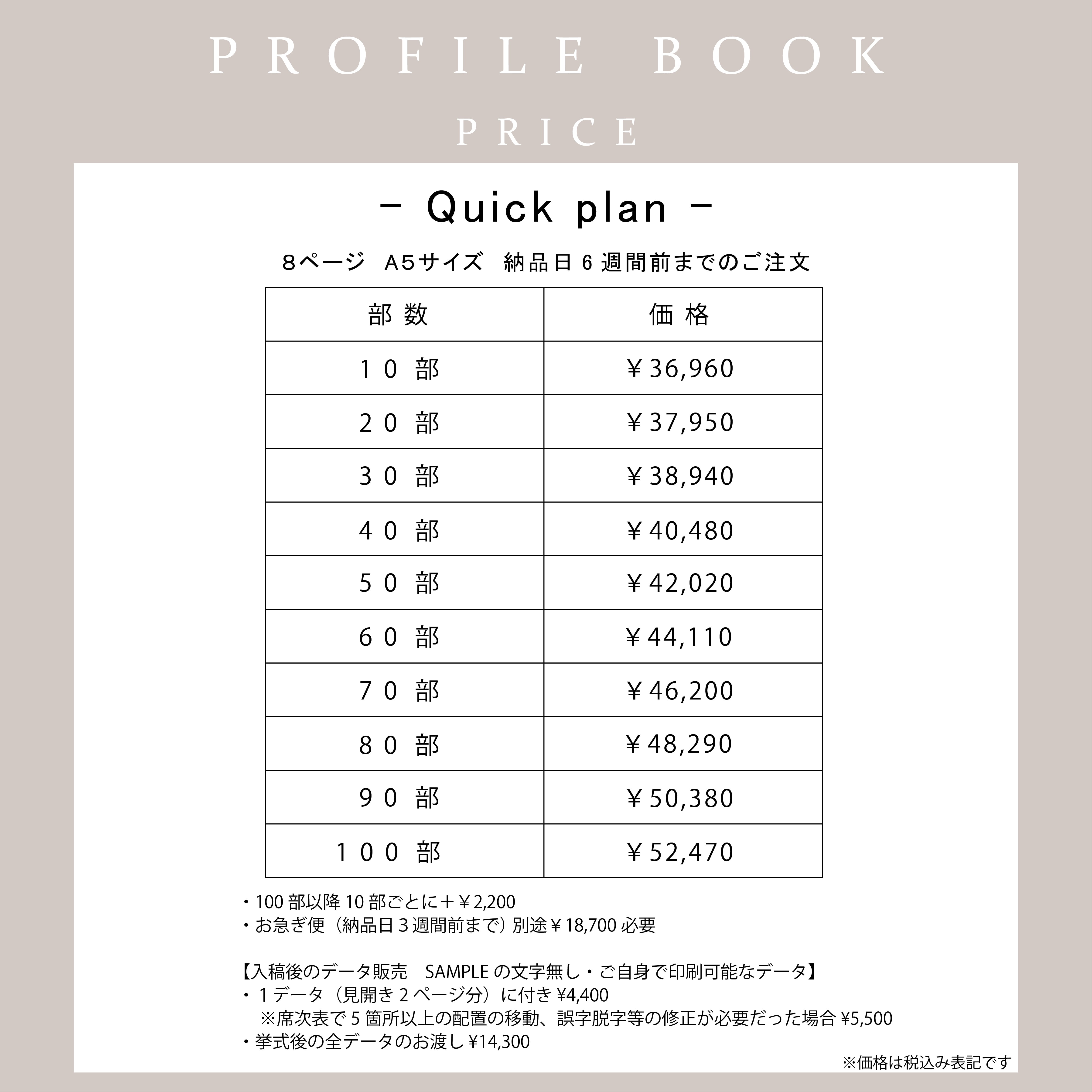 プロフィールブック、クイックプラン、印刷有り80部