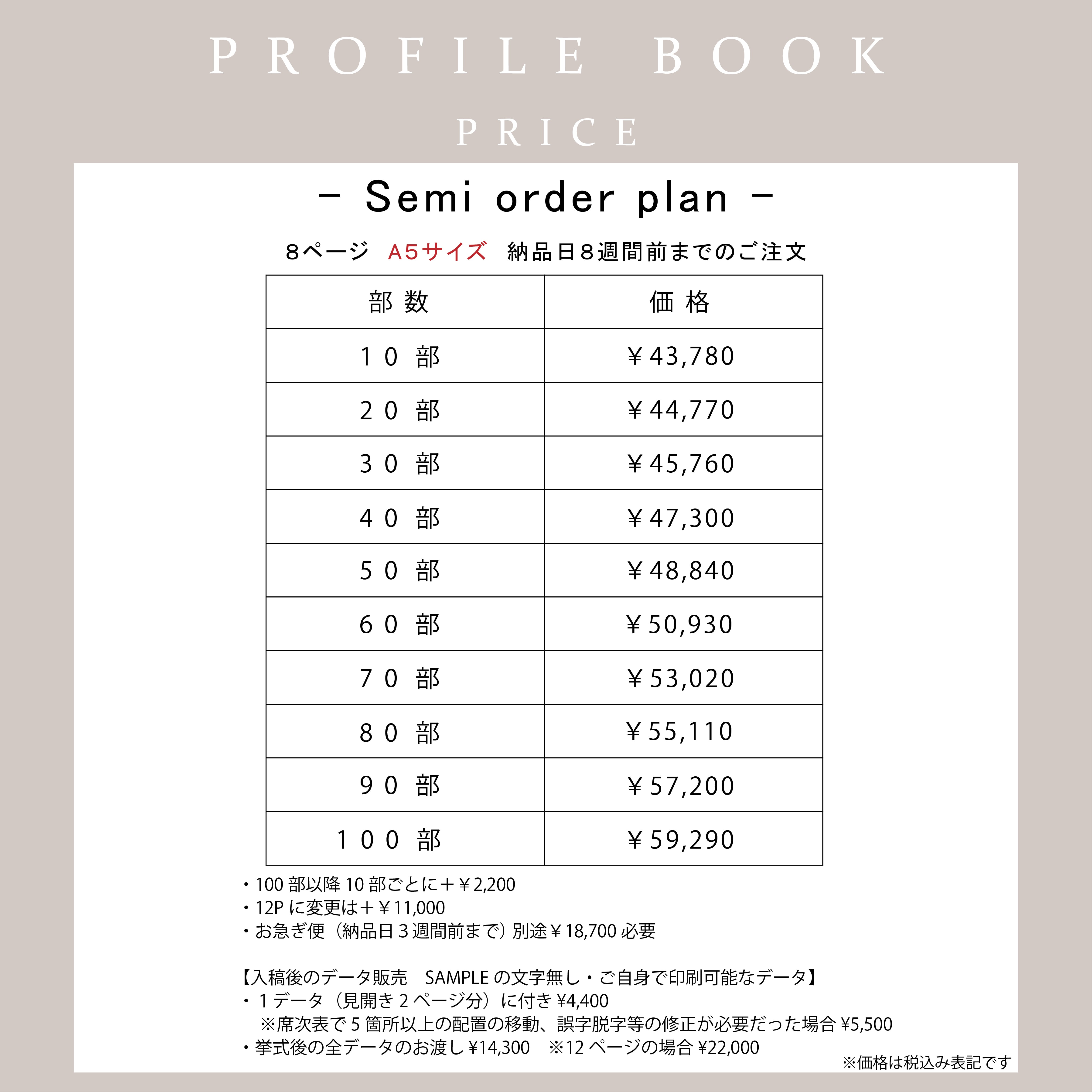 プロフィールブック、セミオーダープラン、A5サイズ、