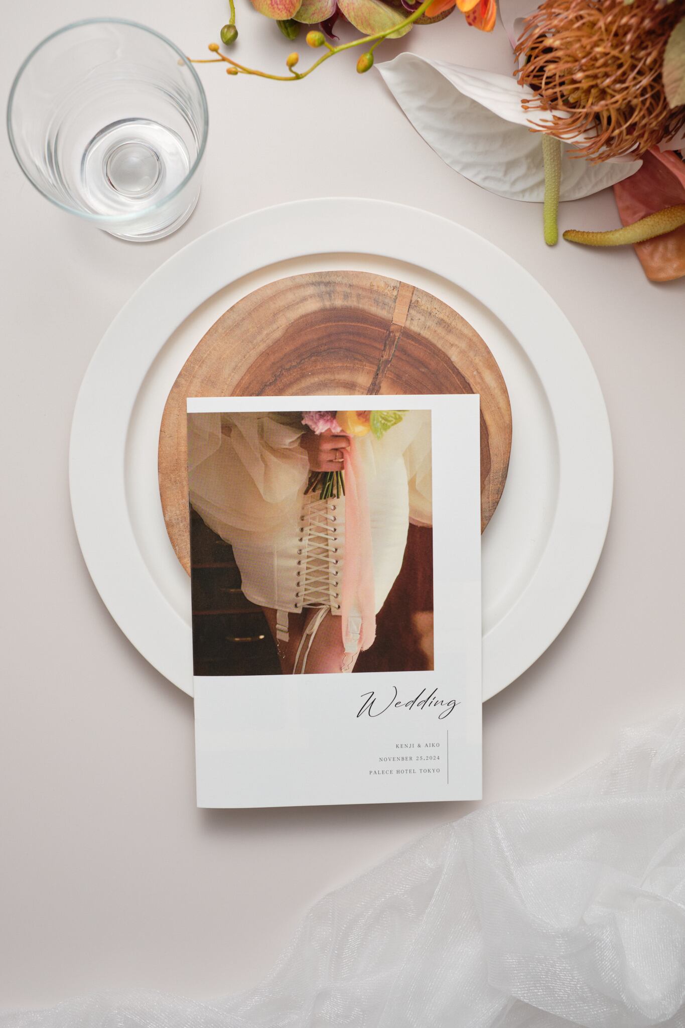 ・8P(1P-表紙 / 2.3P-挨拶 / 4P-プロフィール / 5P-ラブストーリー※メニューに変更可 /6.7P-席次表※Q&A.アルバムに変更可)